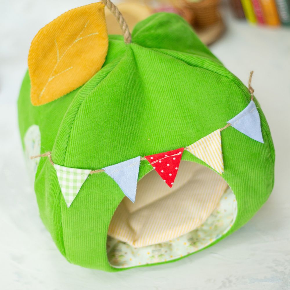 - материалы для пошива домика в форме яблочка и постельки